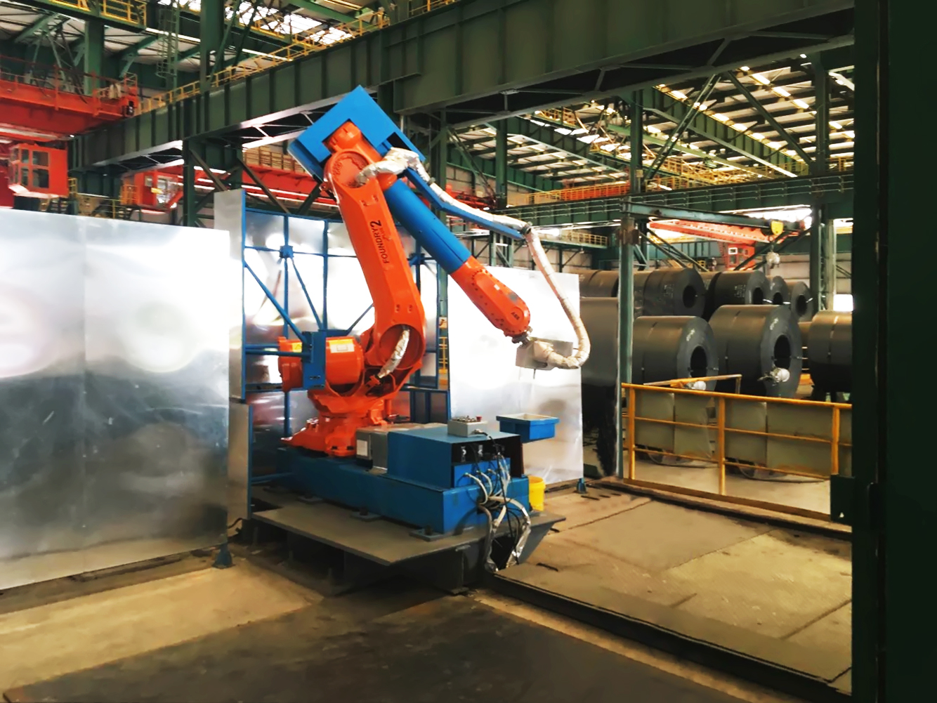 4、防塵防高溫設計。針對現(xiàn)場惡劣的環(huán)境,機器人采用耐高溫材料包裹、視覺設備采用防塵及通氣冷卻。